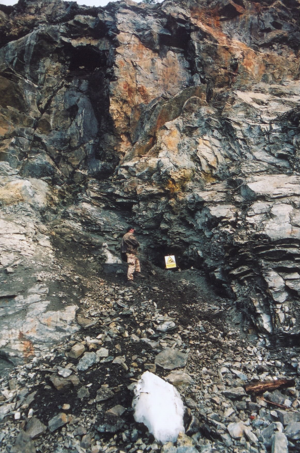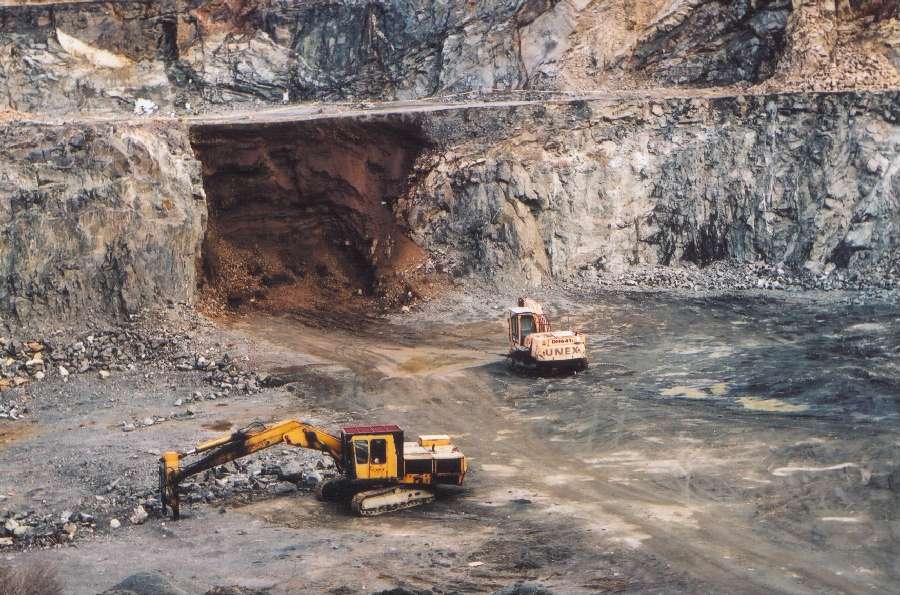 Pohled do nejprve zasypané a poté v současnosti nastřelené komory magnetitového dolu Holý vrch