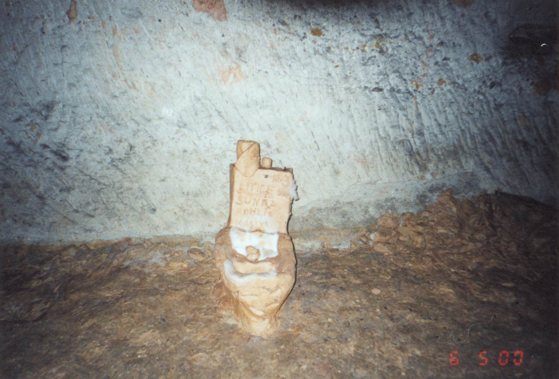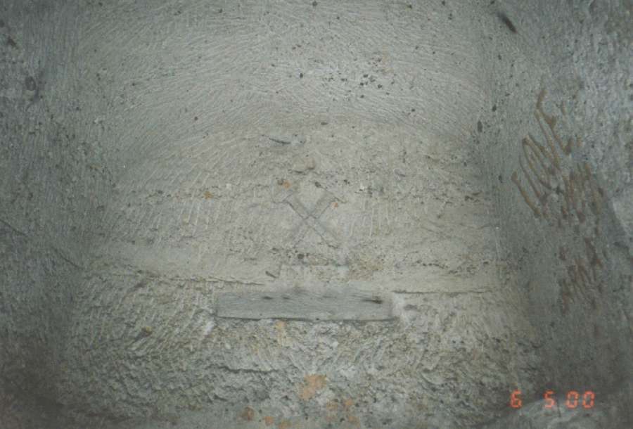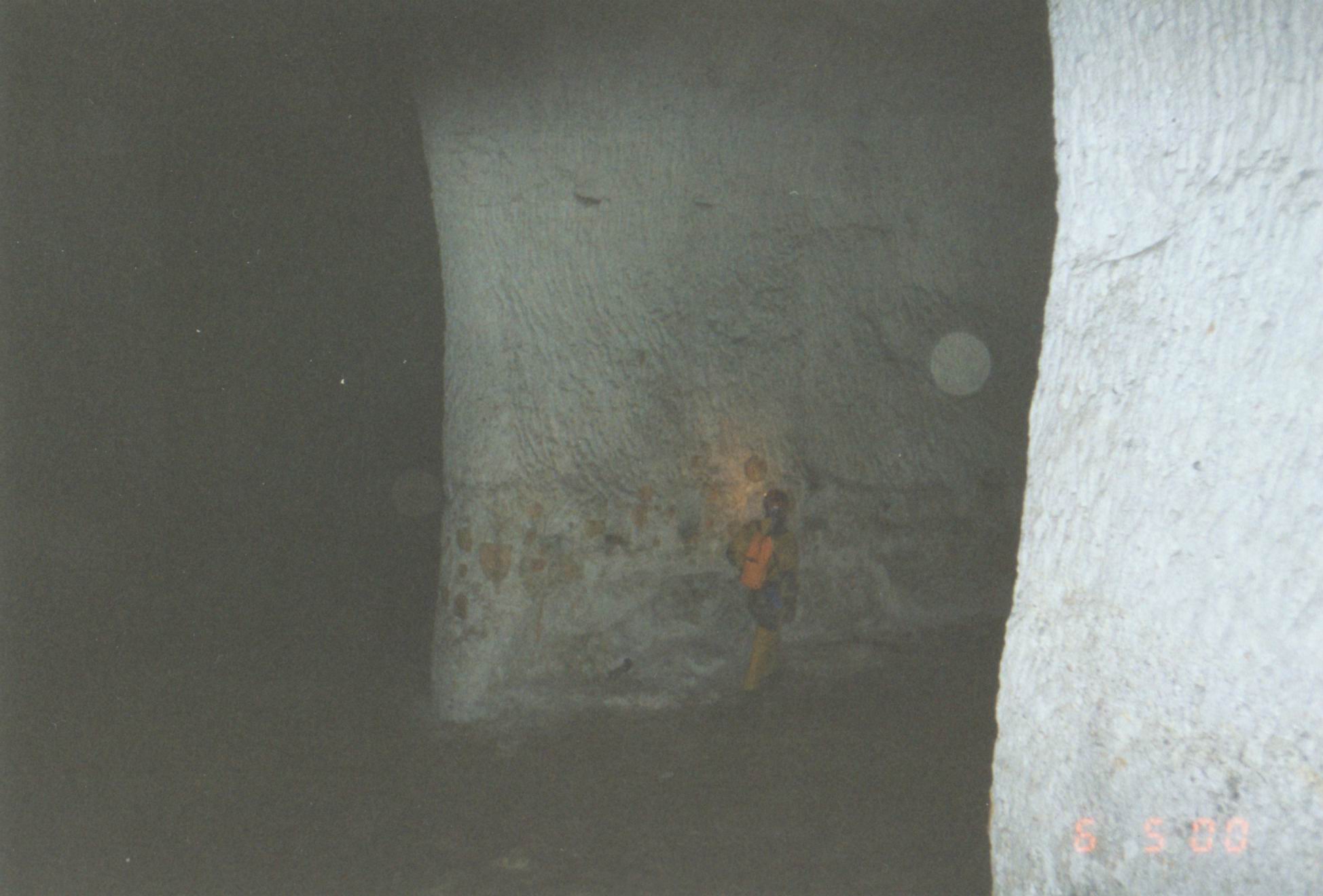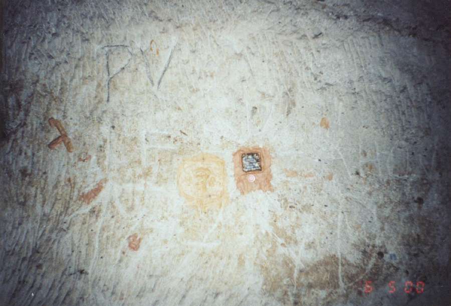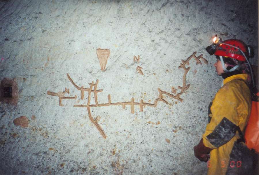 Mapka dolu vyvedená z místní hlíny na stěně dobývky