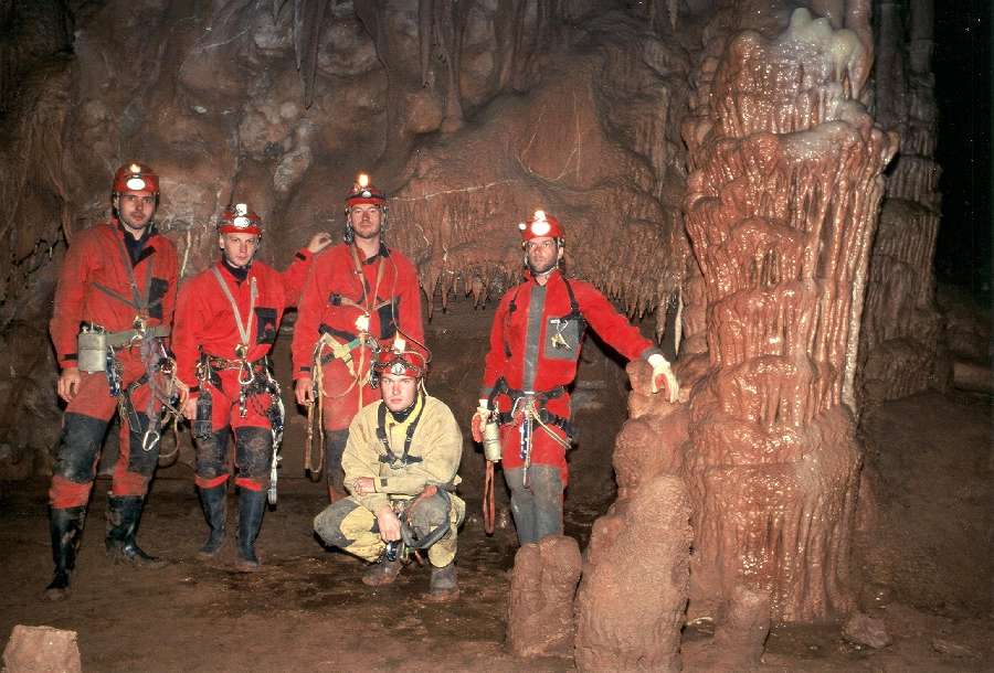 Grotta Cicci, část kolektivu výzkumníků dole v dómu