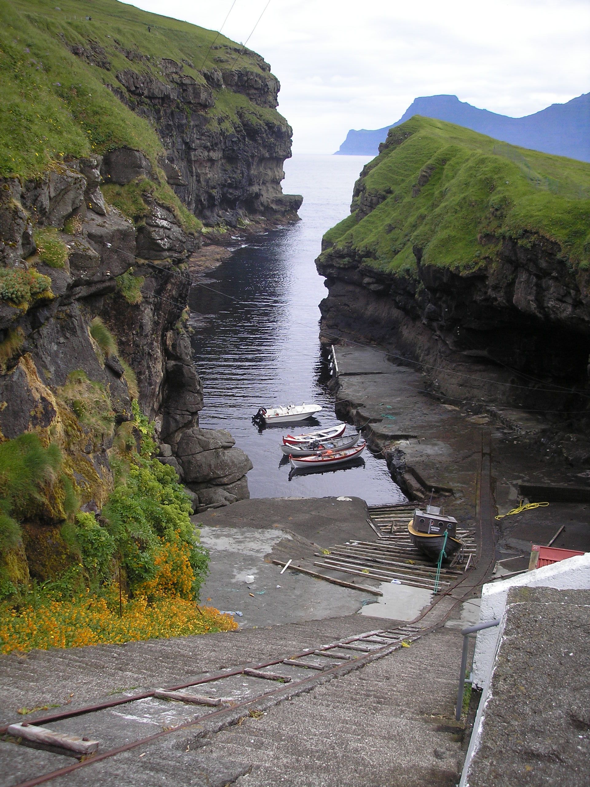 rybářský přístav v trhlině - Gjógv