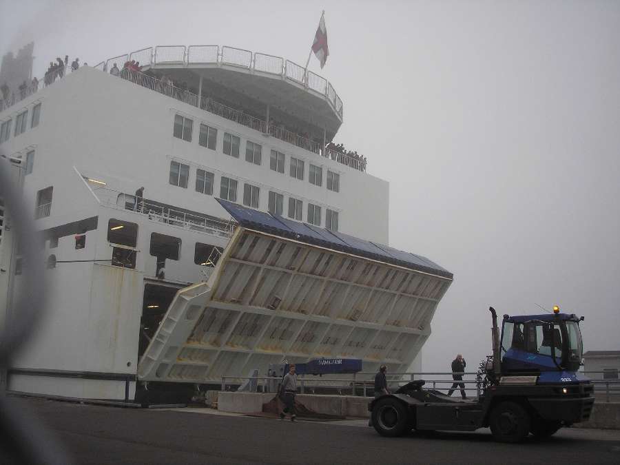 náš trajekt se vrátil z Norska v mlze