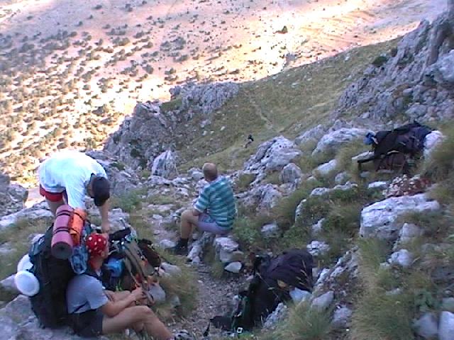 Vynáška - přestávka u poslední pitné vody. Tázavé pohledy nahoru.