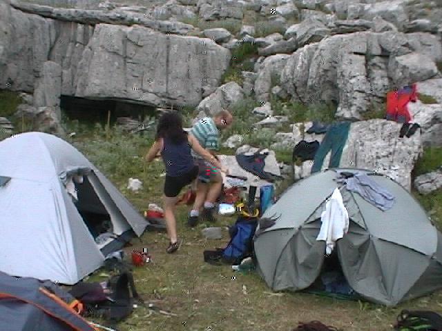 Tábor na druhém ''prstu'', asi 500 m od Provatiny. Kopřivy, bodláci, kravince, komáři, mouchy, vedro, voda asi 1,5 hod. přes kopec, standartní pohoda.