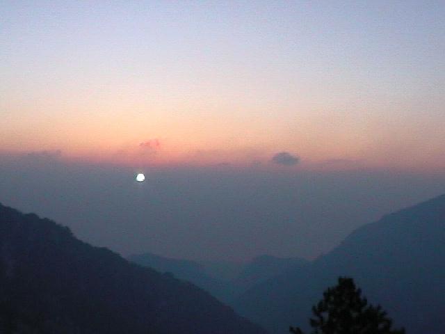 Východ slunce při výstupu na Olymp. Startovali jsme ve 4:30, aby nebyl opar a byl dobrý rozhled.