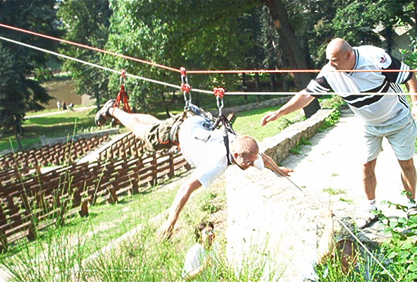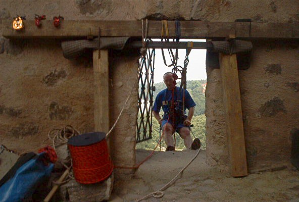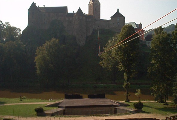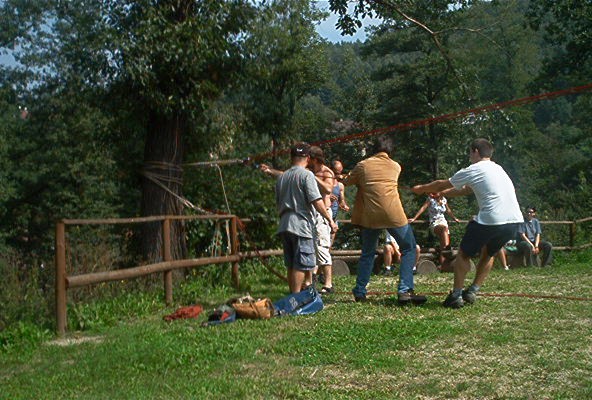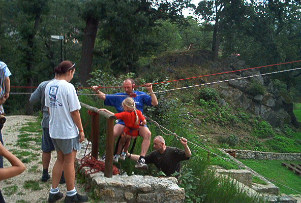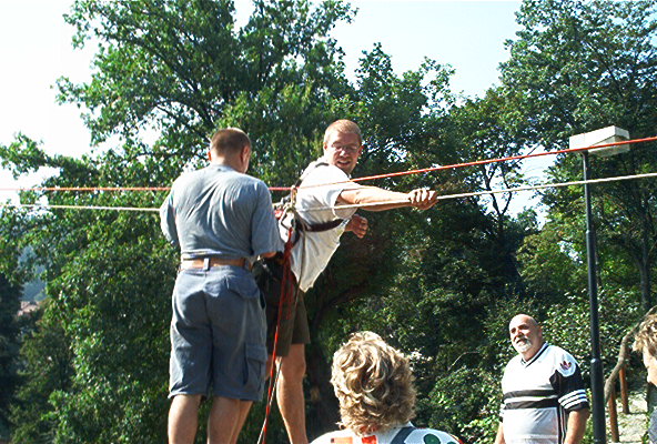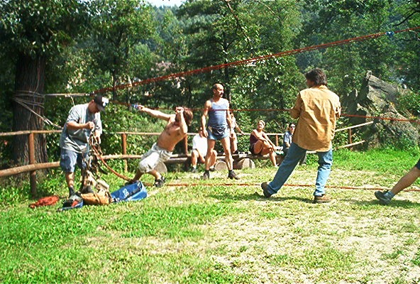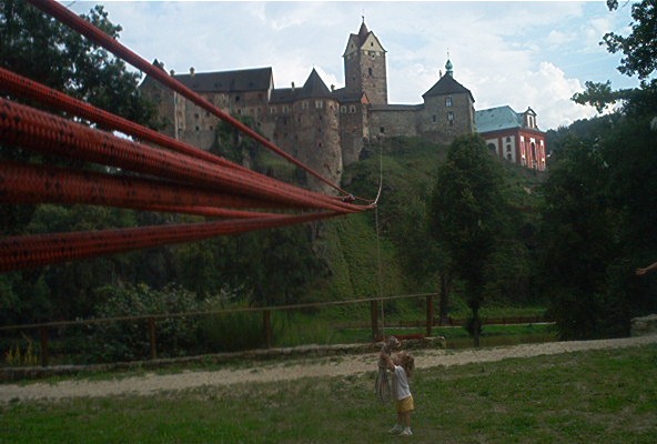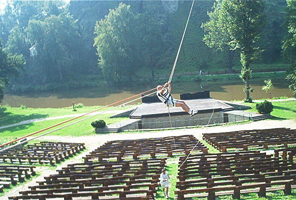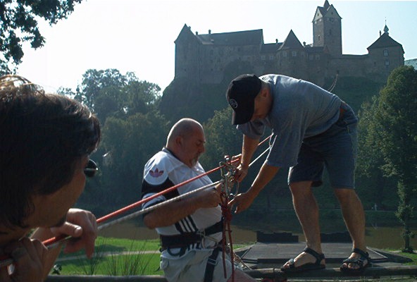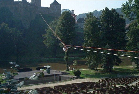 O víkendu 24.-25.8.pokusný traverz z hradu Loket na protilehlý amfiteátr přez řeku Ohře v délce 160m.Nápad Járy K. provedla a dva dny provozovala skupina(Vlad.,Čajda,Zuzka(Č.),Soptík,kamarádi z báňské z.SU a profi hasičů K.Vary. Na opět kamarádském traverzu nechyběl ani Loketský starosta,farář,paní starostová a pár našich dětí.